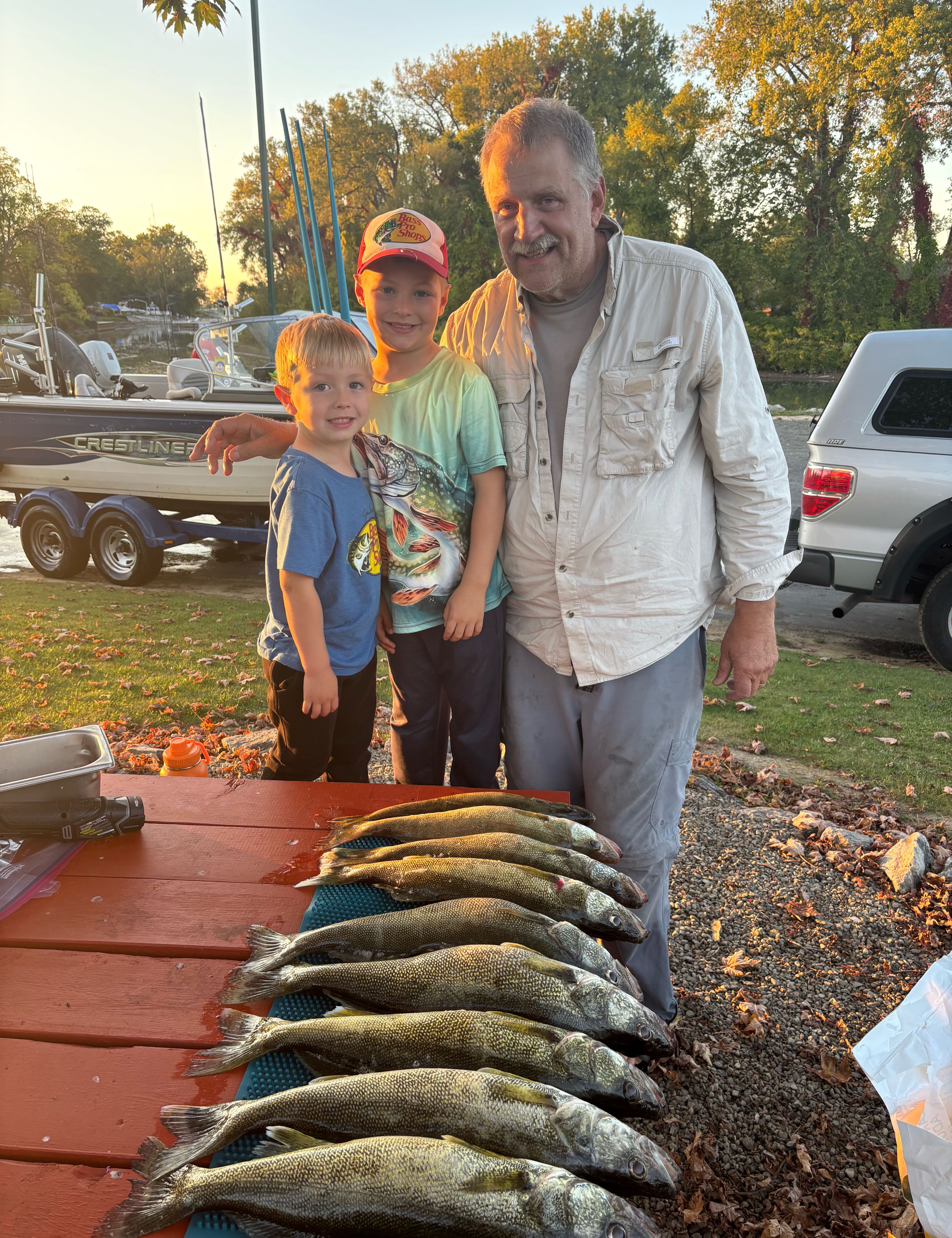 Taking out the young crew Rio-6 and Emerson-4 in search of catching their first wallye was a success. Weather and winds were perfect for these young  fisherman. They both were excited as each caught their very first walleyes with a final total of 9 fish . They both reeled in all the fish without any assistance, only me netting their catch.